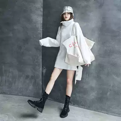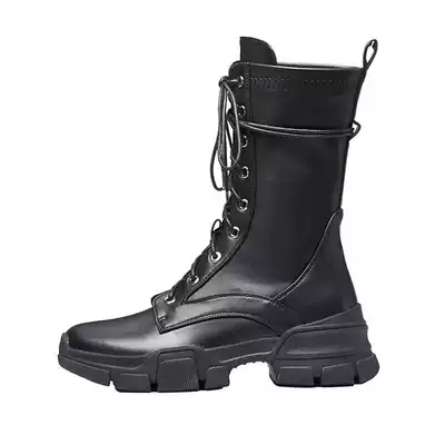 Leather thick-soled Martin boots female tide ins Net red thin boots increased short boots tie-up boots handsome locomotive boots