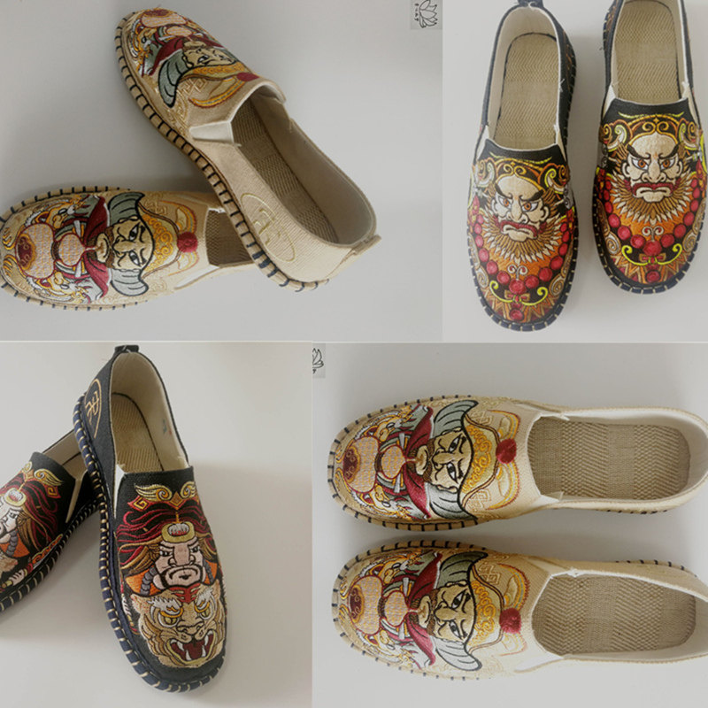 Spring and autumn Chinese style retro embroidery Wu Songniu tendon bottom sails cloth shoes cotton linen bottom shoes One foot pedal Thousand bottom men's shoes
