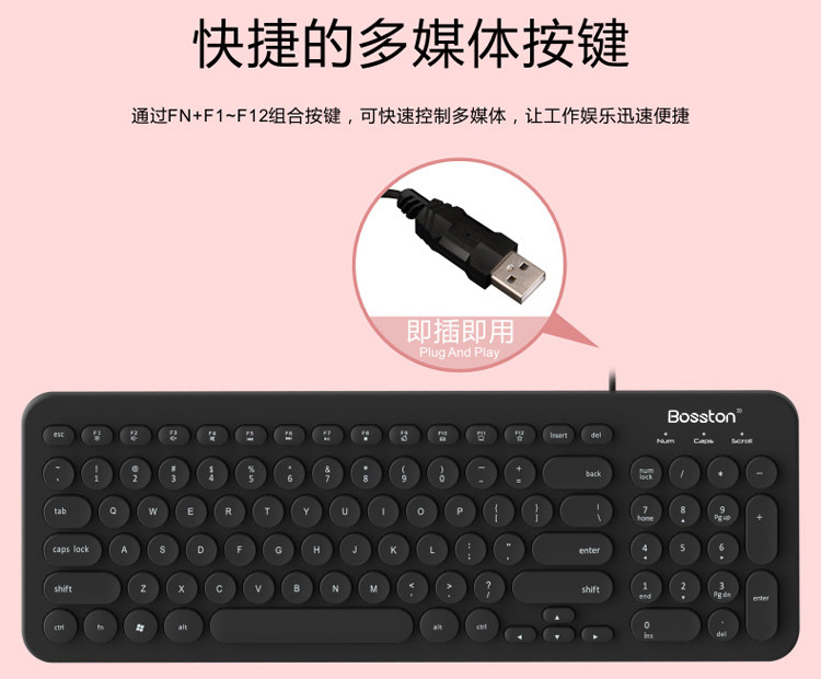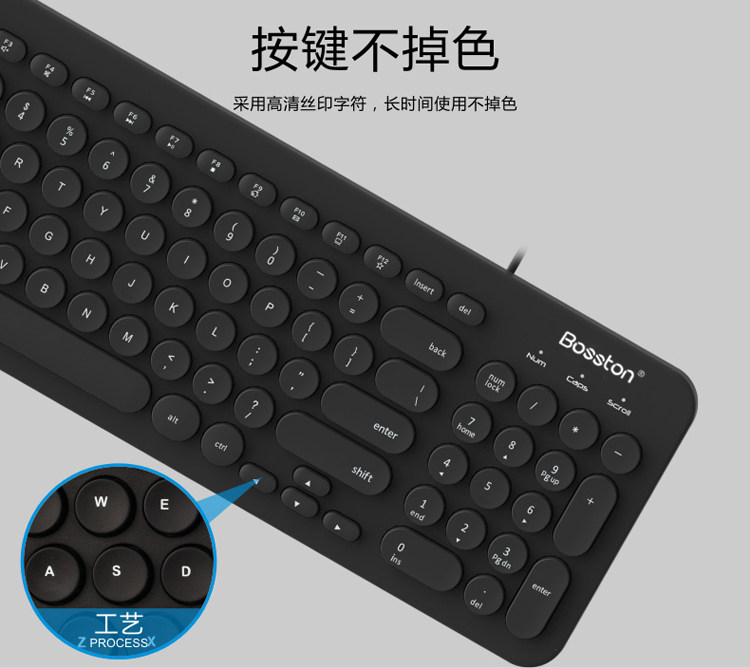 Doctoral Ton K360 Retro Round Keycap Wired Keyboard Wireless Mute Chocolate Office Home Laptop USB