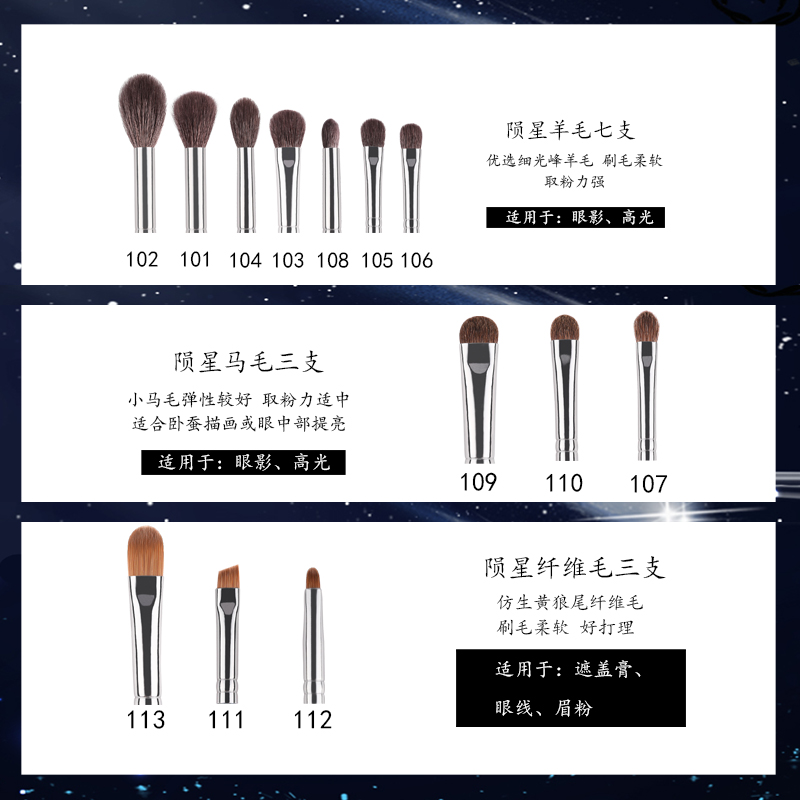 (T1-13) Meteor 101 Number of wool round head high light brush (T1-14) meteor 102 Number of squirrels tail wool high light brushed (T1-15) Meteor 103 Number of wool base