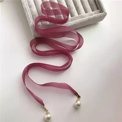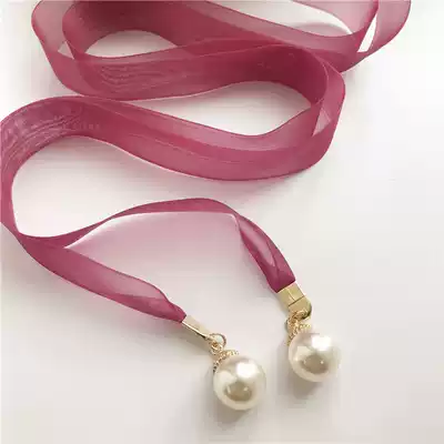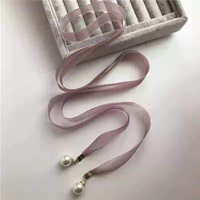 New original Korean pearl belt All-match dress thin waist rope temperament ribbon waist decoration hair ball pendant
