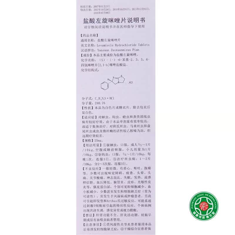L-Imidazole hydrochloride tablets 25mg * 100 bottles for roundworms, hookworms, pinworms and fecal round nematode disease