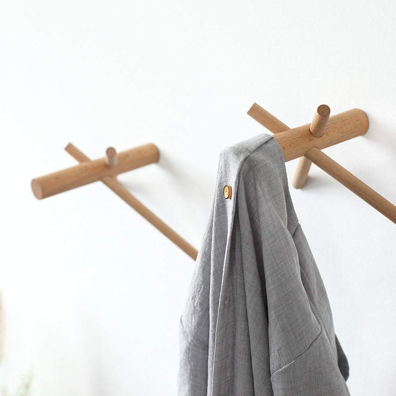 Creative Wall Hook Solid Wood Nordic Clothing Hat Rack Hung Hanger Wall Decoration Free Of Punch Personality Wood Hanging Clothes Hook