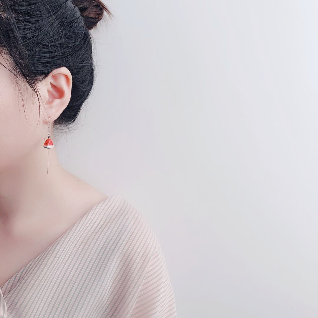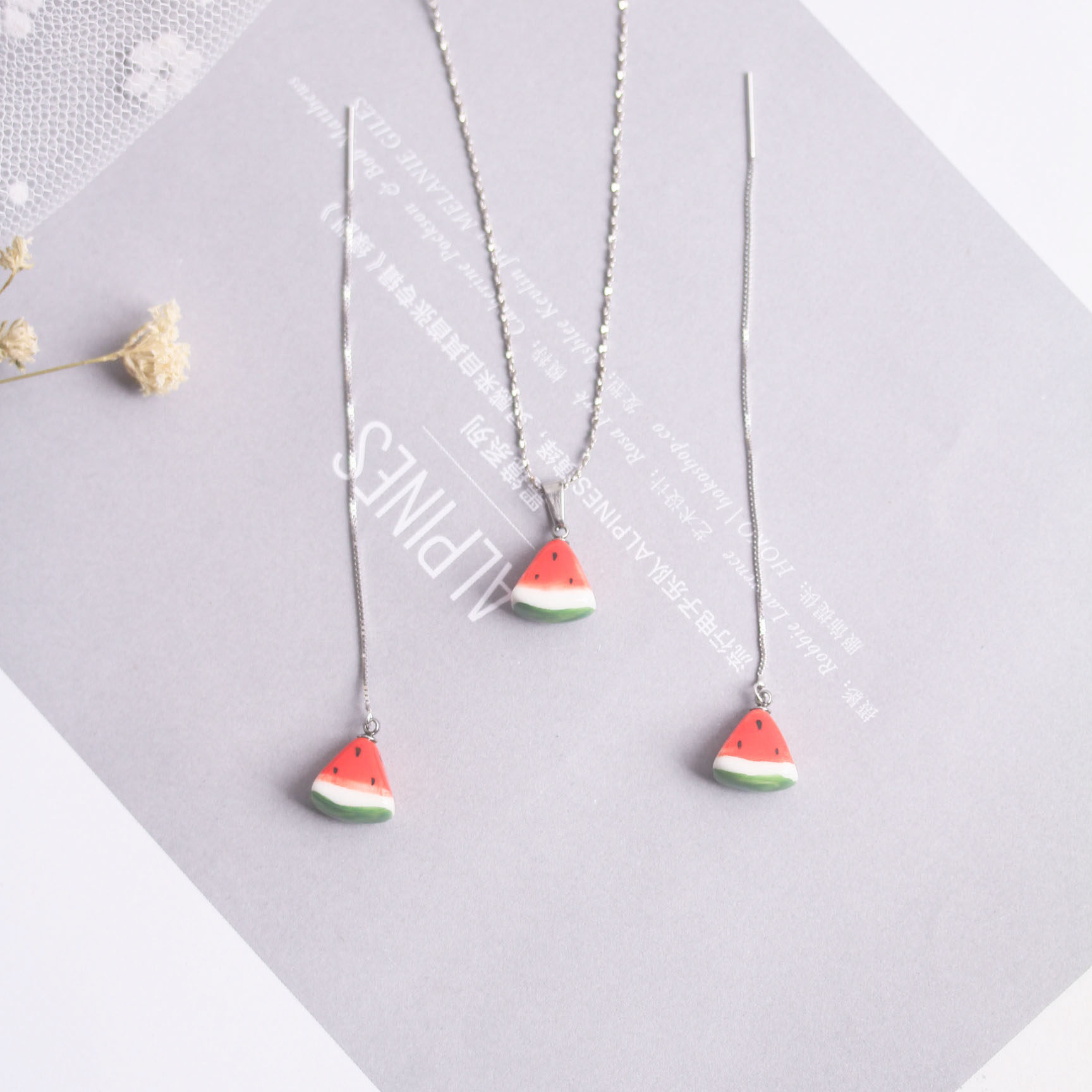 Flowers hands pure hand - drawn watermelon ear s925 pure silver earrings long - plate necklace women's pendant beautiful fresh temperament
