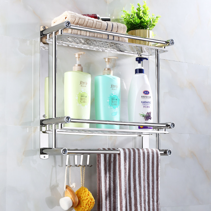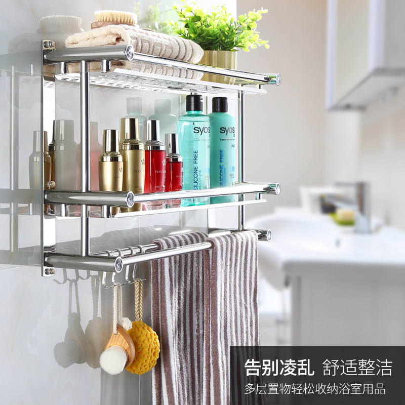 Towel Rack Stainless Steel Free Punch Makeup Room Shelf 2 Floors 3 Floors Bathroom Bathroom Toilet Bathroom Wall-mounted
