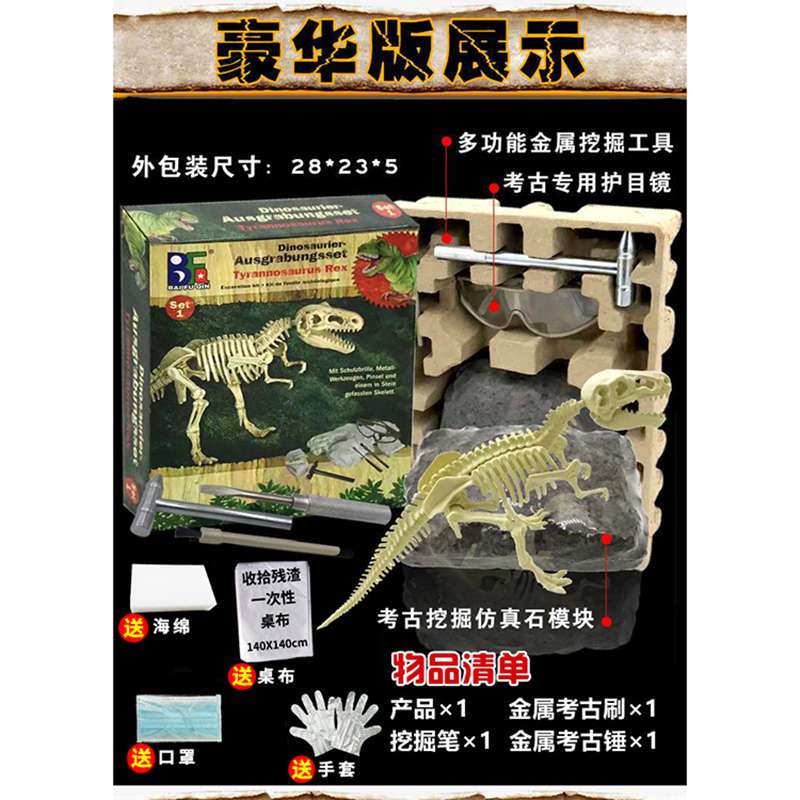 Tyrannosaurus rex dinosaur fossil skeleton archaeological excavation toy children hand-made diy material assembly model