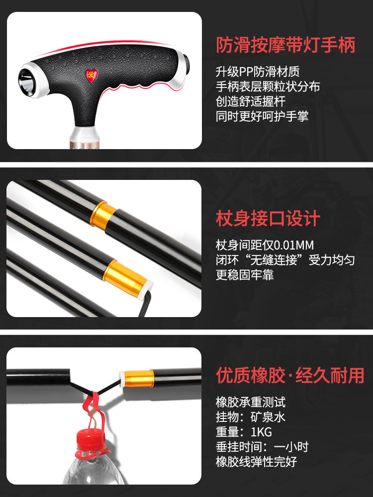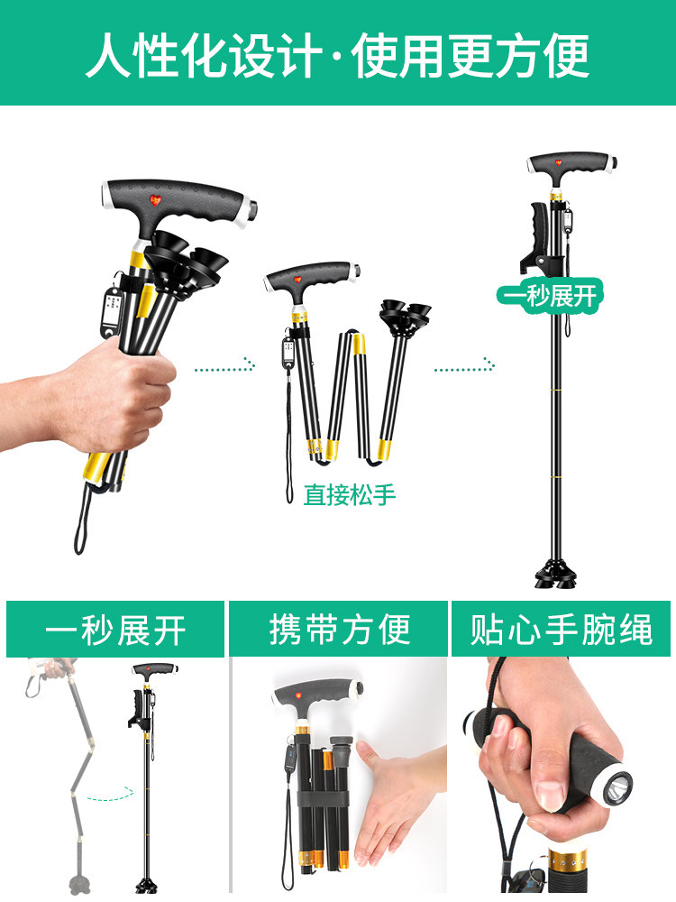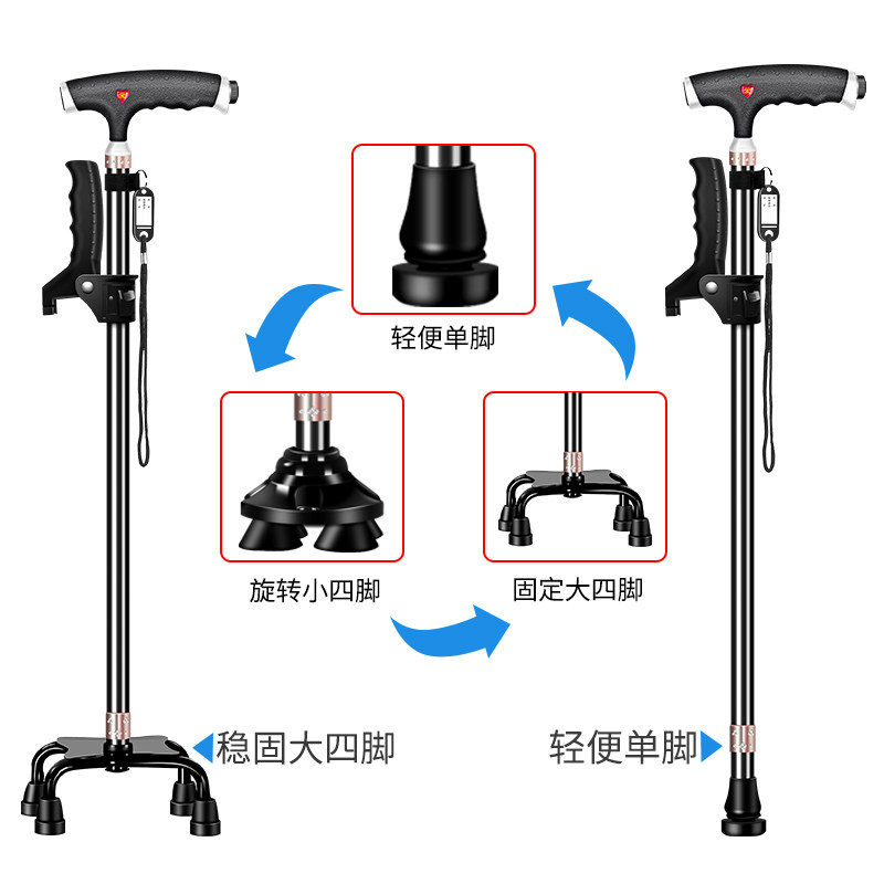 Ultra-art old man Walking Stick Four Feet Telescopic Cane old age Elder Abduction versatile light cane Anti-slip walking stick with lamp
