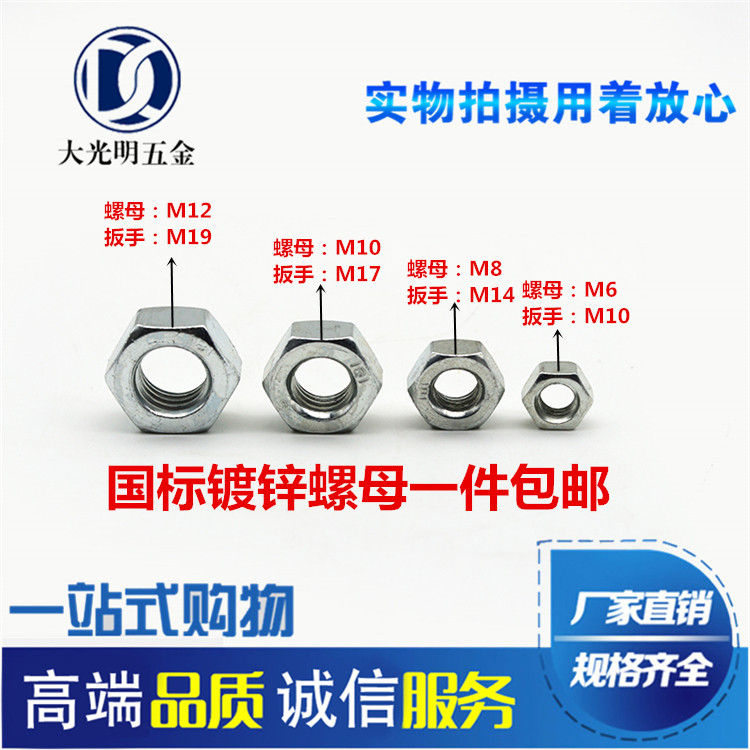 4 8 Hexagon carbon steel national standard galvanized nut nut M3M4M5M6M8M10M12M14M16-M24