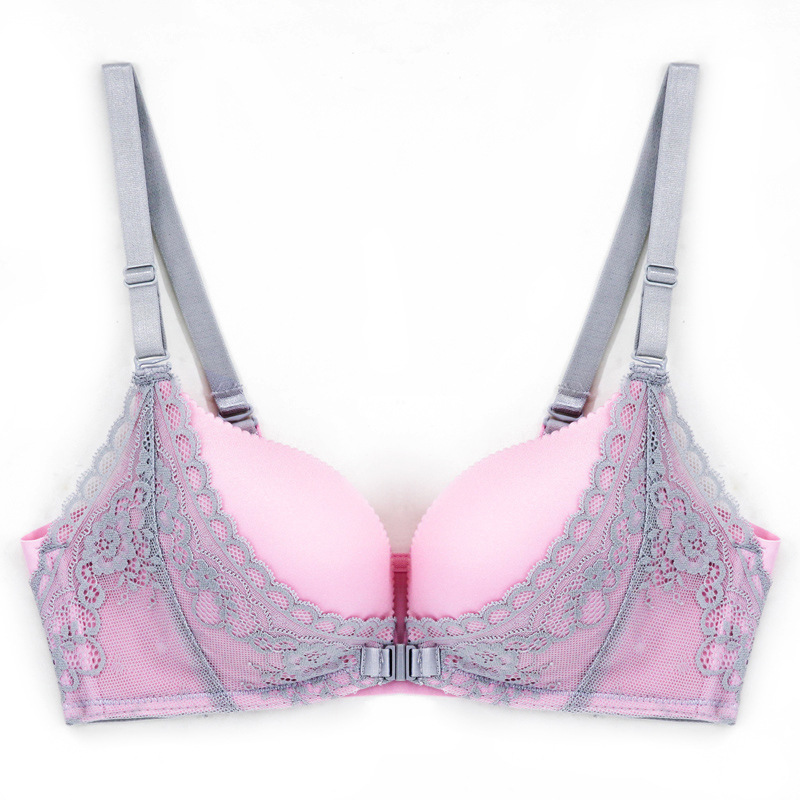 Lace front buckle rimless bra New small chest gathered one-piece adjustment comfortable sexy underwear women's bra