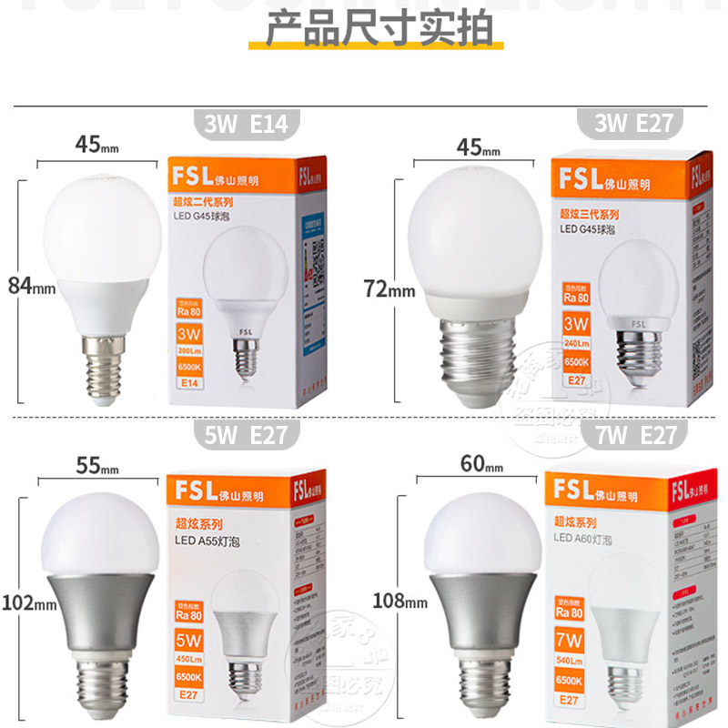 FSL Foshan Lighting LED large screw e27 ball bubble 5We14 household 3W indoor lighting small screw ultra bright light source