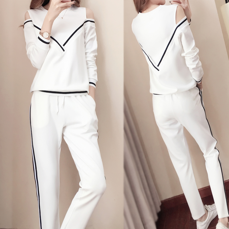 2022 new spring and autumn suits women's fashion casual wear net red fried street white sportswear sweater strapless two-piece suit