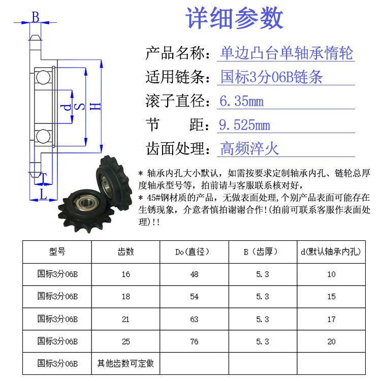 06B16 teeth 06B18 teeth06B21 teeth06B25 teether other tooth number other bearing inner holes customized if urgently needed please consult customer service first