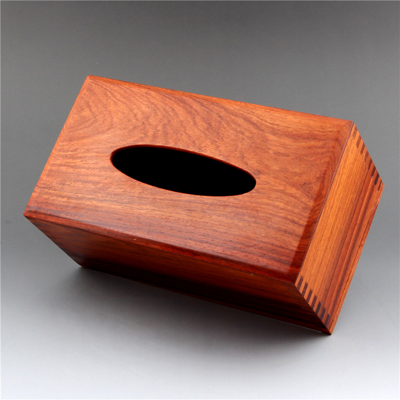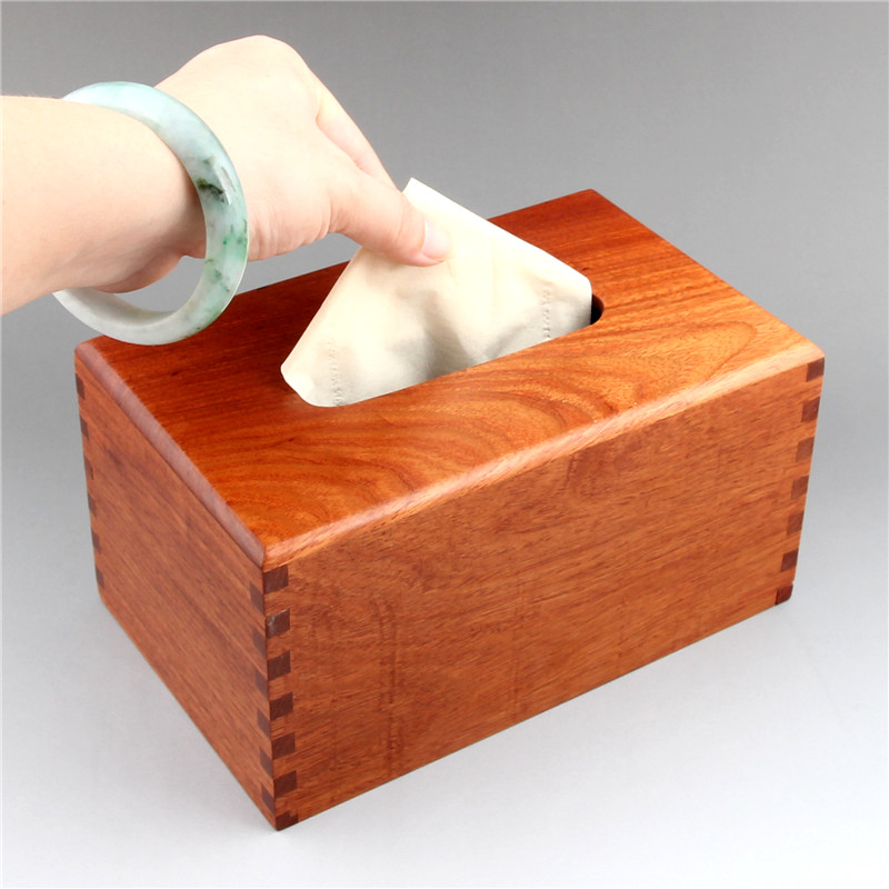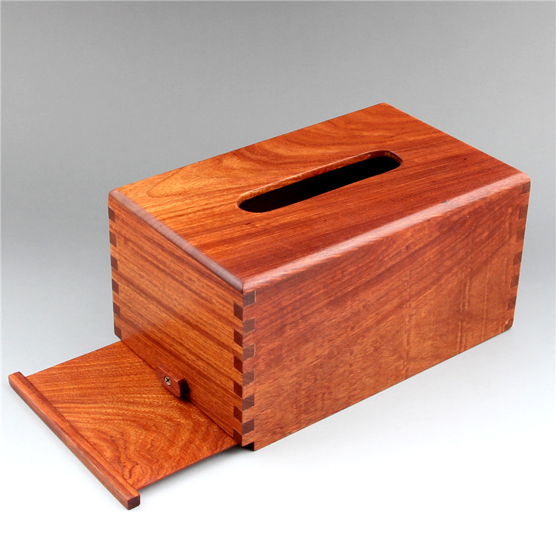 High-end red wood paper towels box flower pears wood tenon and mortise New Chinese solid wood made containing box Living room table light and luxurious toilet paper box
