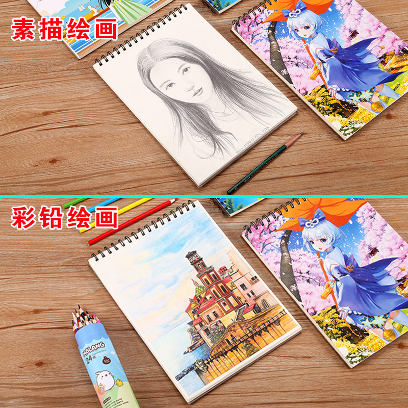 (Buy 2 get 1 free)Blank sketchbook a4 Sketchbook 8k hand drawing book for elementary school students Beginner drawing book Children's kindergarten color pencil picture book for art students special big 8 open paper