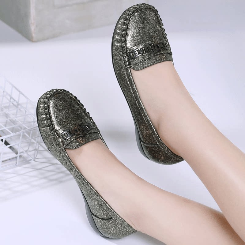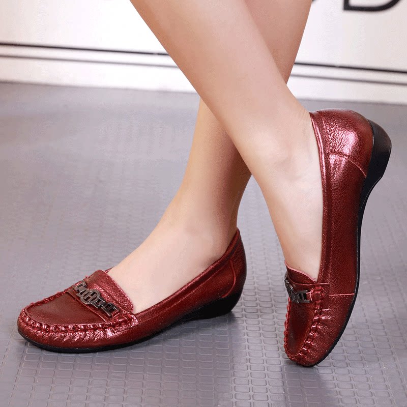 2022 Summer Genuine Leather Bean shoes One foot pedal large size Single shoe woman 40-43 new wave 100 hitch flat-bottomed mom shoes