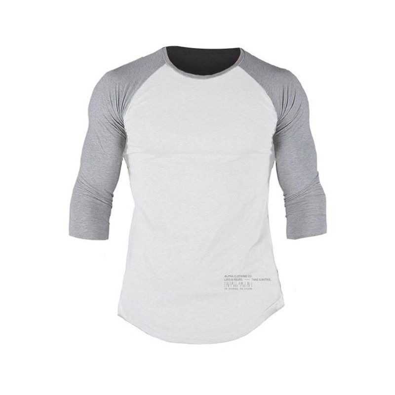 Muscle Fitness Dog Brothers Stitching Seven-point Sleeve Men's Stretch Breathable Sports T-shirt Base Crewneck Training Clothing Running