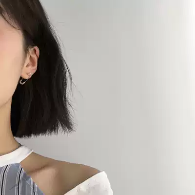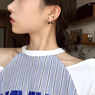 Cool handsome pin s925 sterling silver tramping earrings female sex cold wind Net Red Tide people personality Black small ear pin earrings