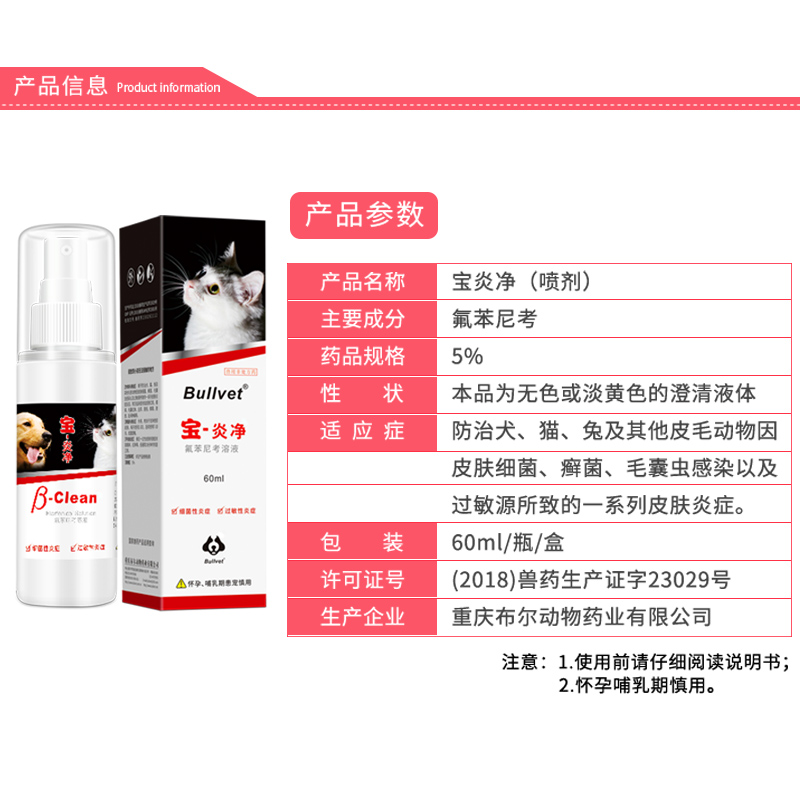 Boer Bao Yan net dog skin medicine inter-toe inflammation pet hair-falling fungus eczema purulent skin disease special topical spray