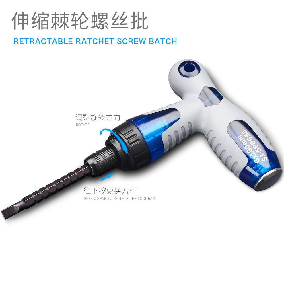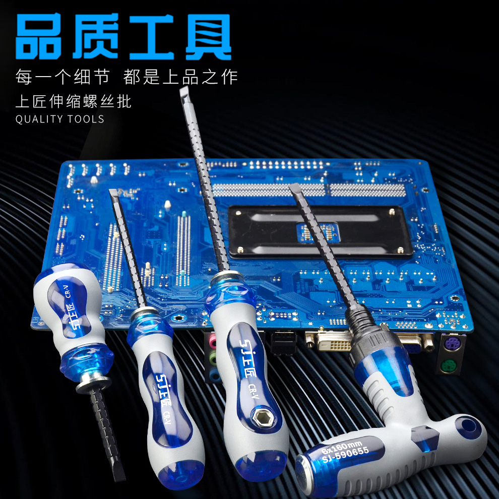 Shang Carpenter telescopic ratchet three-use screwdriver screwdriver double-head screwdriver dual-use screwdriver Cross word batch head strong magnetic