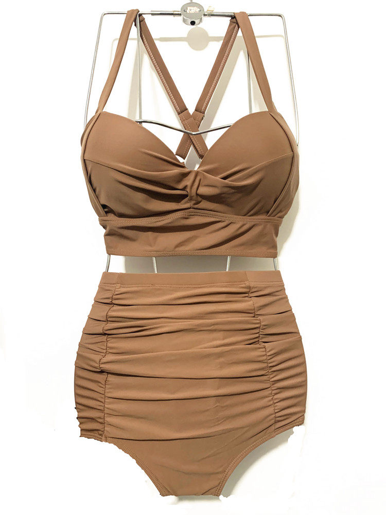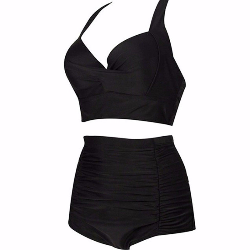 Anti-sagging side closing bikini black slimming just drag high waist bikini export big cup meat-covering swimsuit women