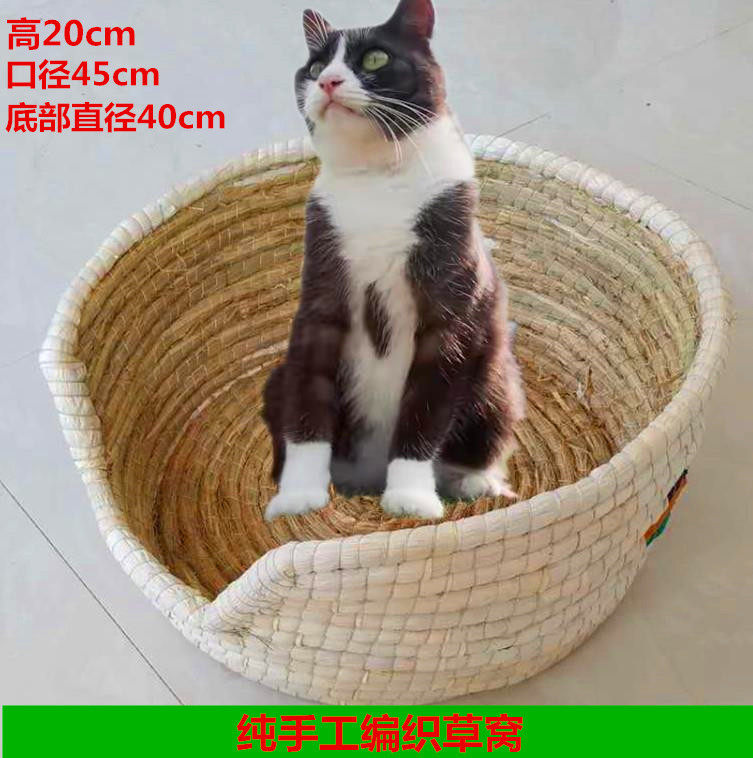 Grass Knitted Cat Nest Bowl Round Grip Plate Chicken Nest Winter Warm Hand Woven Pet Nest Large Number Cat Toy Dog Mat