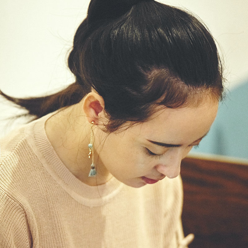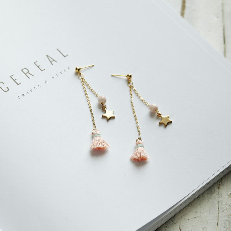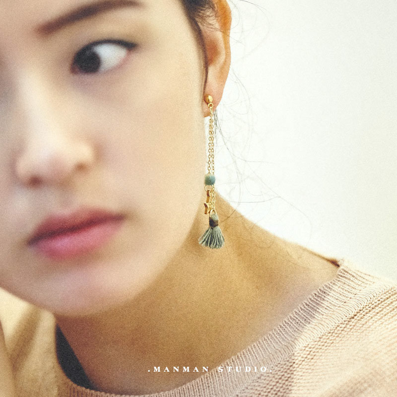 Flowers handle small fresh sweet s925 pure silver flow Su star long - edition earrings female anti - allergic temperament