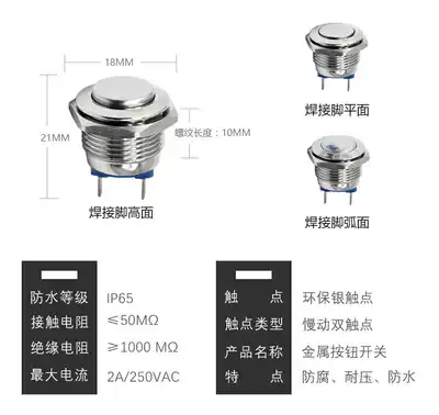 16mm metal round button waterproof switch high head flat ball head Self-reset self-locking one normally open