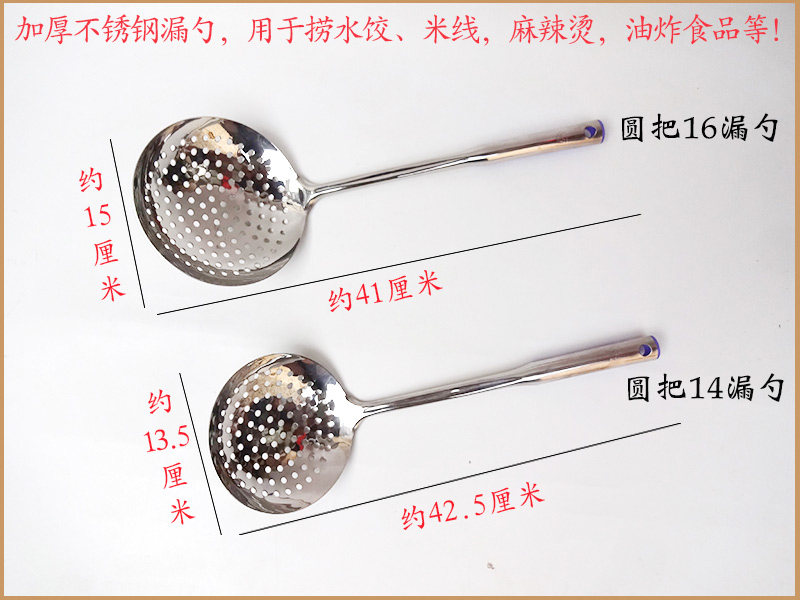 Thickened stainless steel leaking spoon Large Number of long handle mixed with spoon Water dumplings Hedge Fry and drain Leaking Ladle Filter Screen