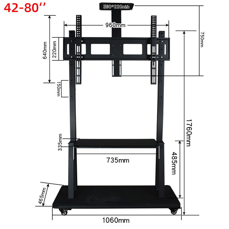32 - 90 inch large TV set to the floor bracket teaching touch one machine mobile trolley rotating hanger