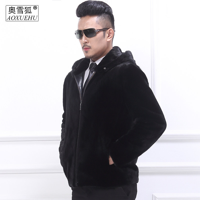 2021 winter new imported whole mink coat male Haining fur with hooded zipper short mink coat
