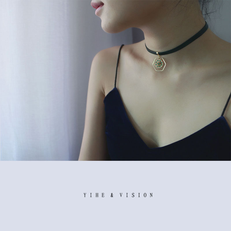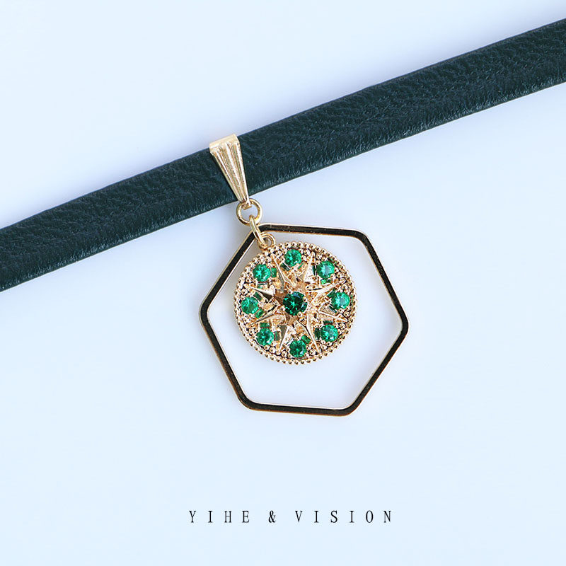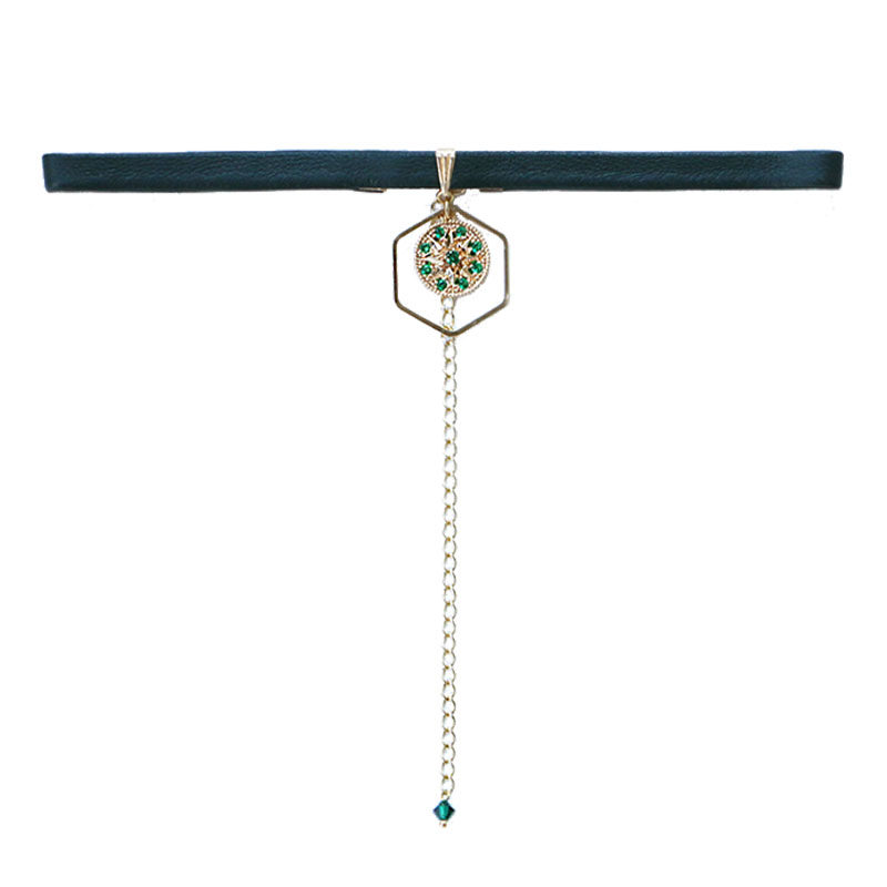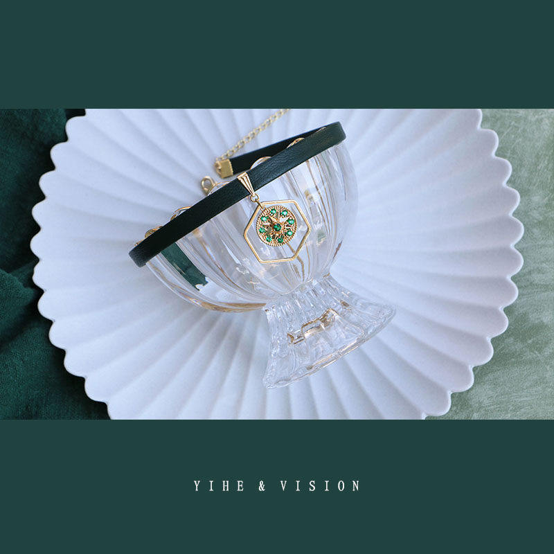 YIHE Original Design Retro Cool Beauty With Strong Seaweed Green Zircons Cortical Choker Neck Strap Neckline