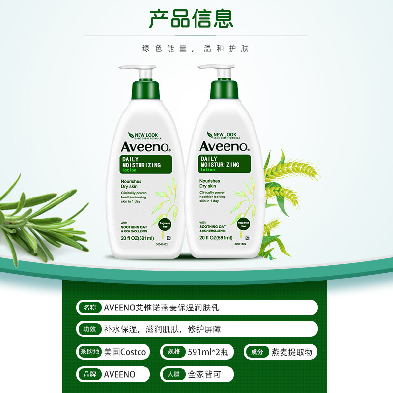 US Direct Mail Aveeno Oatmeal Body Milk Moisturizing Moisturizing Body Lotion 591ml*2 bottles