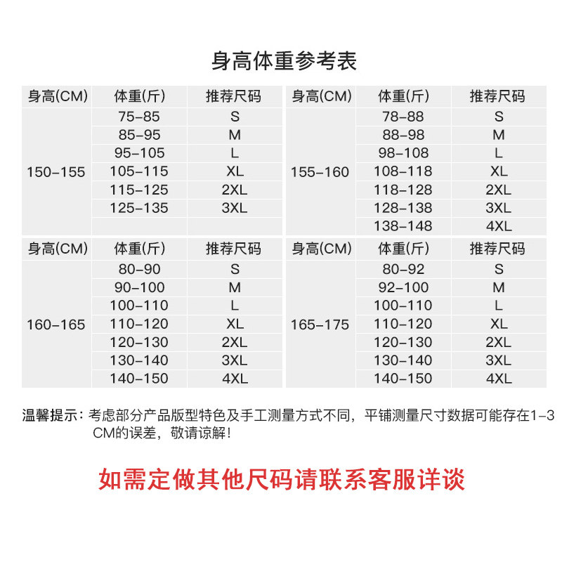 S (recommended below 90kg) M (recommended 90kg-100kg) L (recommended 100kg-110kg) XL (recommended 110kg-120kg) 2XL (recommended) 2XL (
