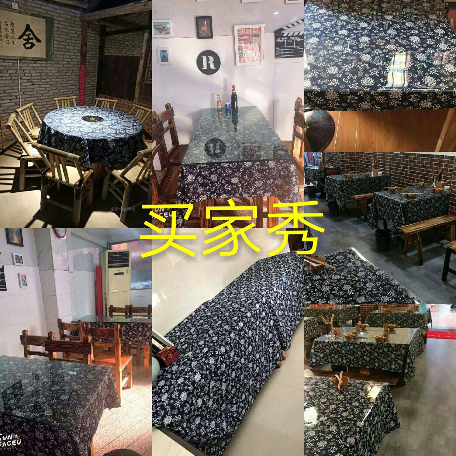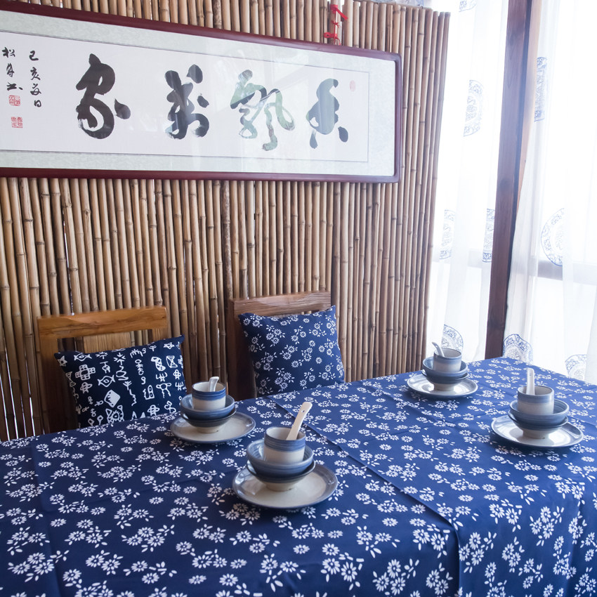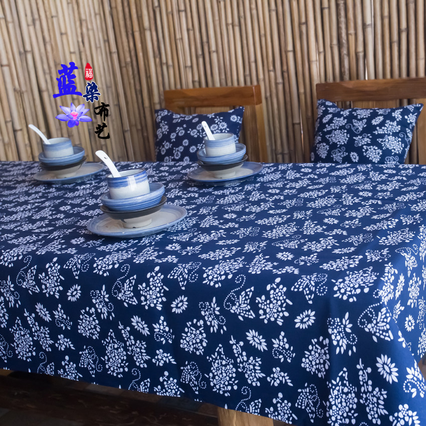 Broken blue and white national wind batik wind dark blue retro pastoral tablecloth fabric cotton and linen hotel teahouse restaurant tablecloth