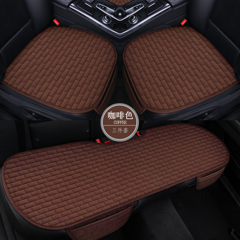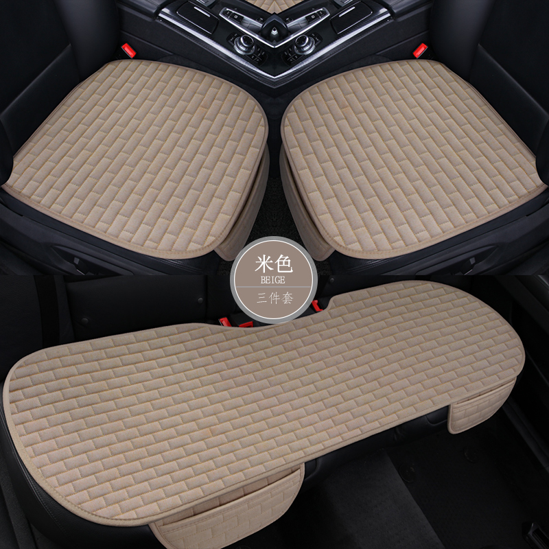 Linen car cushion four-season universal single-piece three-piece seat cushion summer no backrest car interior cushion breathable