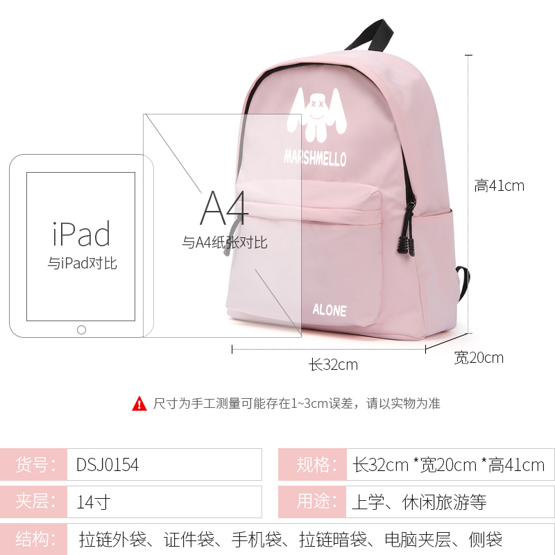 marshmello school bag hundred DJ Marshmallow shoulder bag Alan Walker Alan Walker with Faded