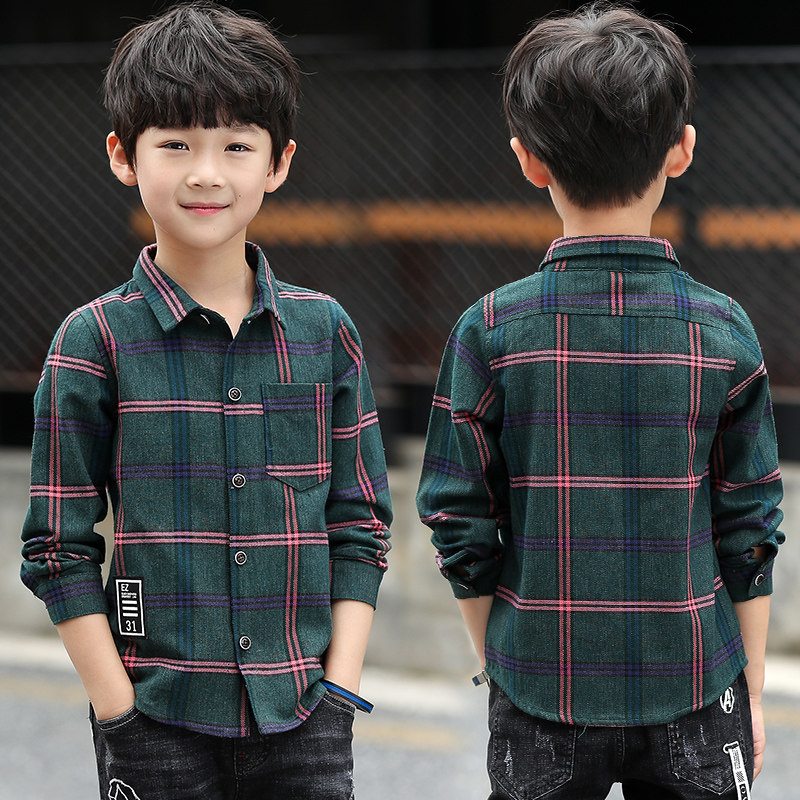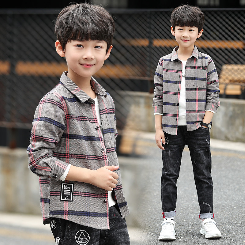 Children's clothes boy's cotton plaid shirt 2021 fall clothes in the new long sleeve coat