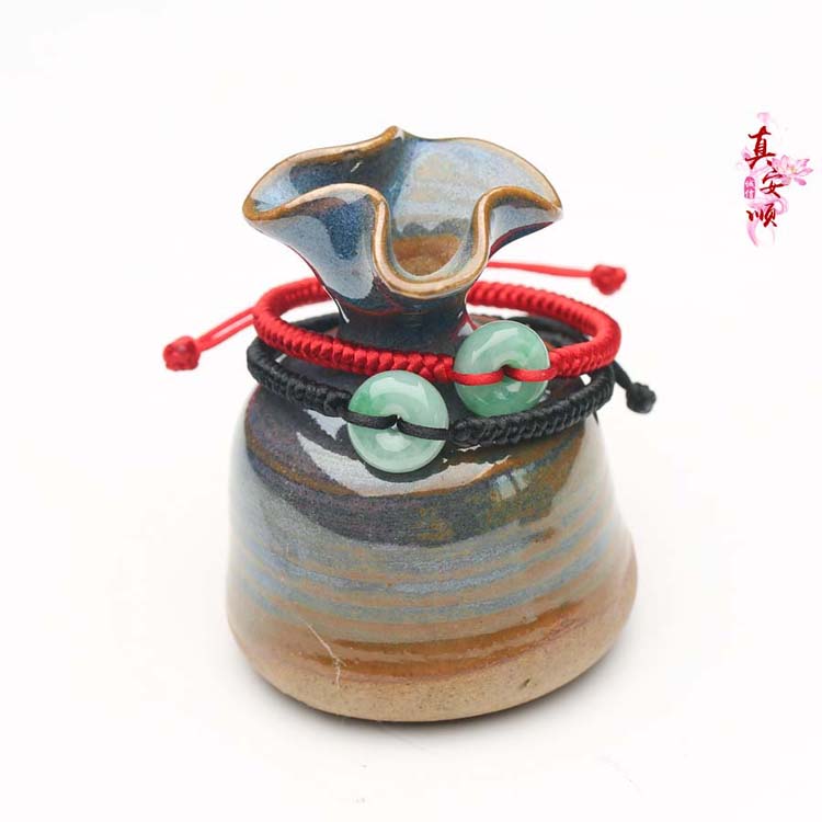 Real Anshun Natural Emerald Jade Red Rope Handmade Emerald Jade Green Buckle Black This Life of Men and Women Couples