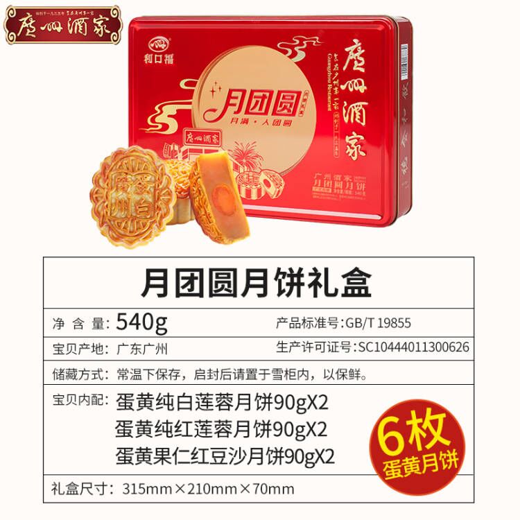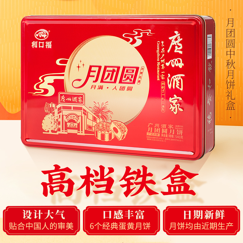 Guangzhou Restaurant Mooncake Gift Box Likoufu Egg Yolk White Lotus Paste Mooncake Cantonese-style Egg Fruit Mid-Autumn Festival Gifts Group Purchase