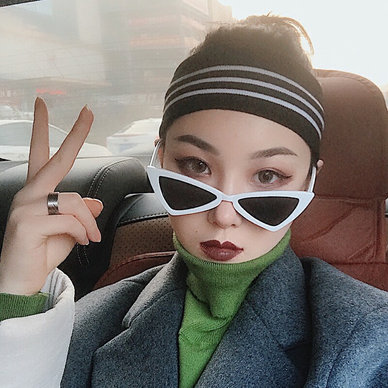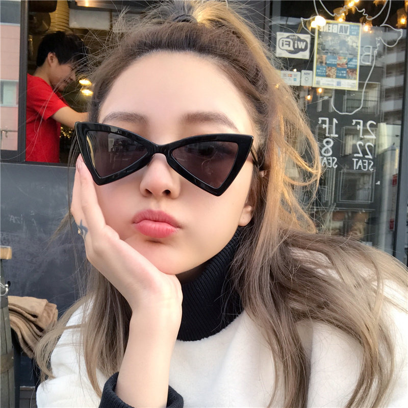 Net red white frame sunglasses Female Korean version of the tide retro Harajuku wind street shot Triangle cat eye hip hop European and American sunglasses