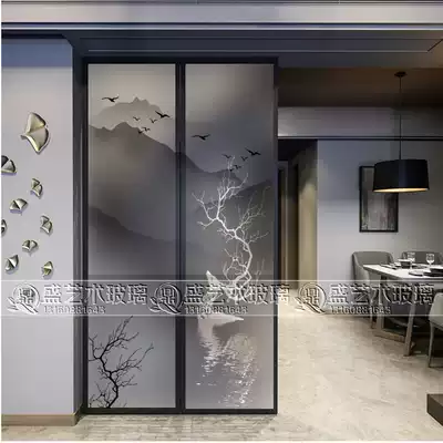 Modern minimalist screen art glass living room dining room partition wall entry entrance double-sided matte background wall elk