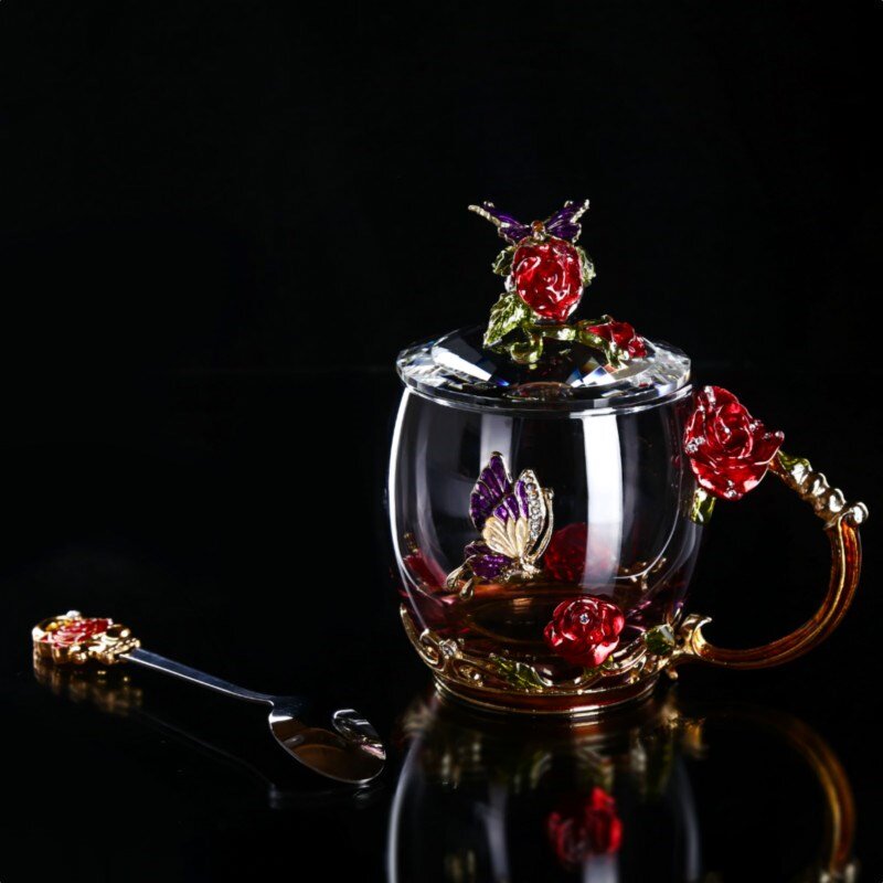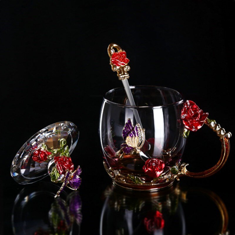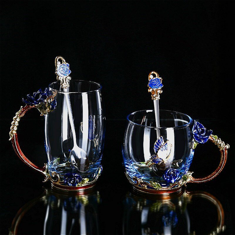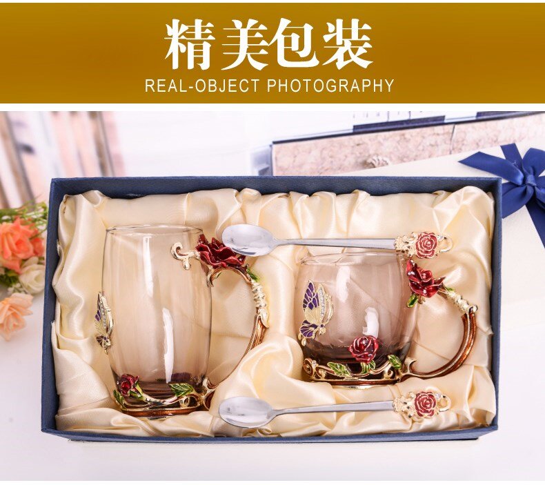 Blue short cover Enamel spoon Coaster blue high paperback Enamel spoon Coaster red short cover Enamel spoon Coaster red high paperback Enamel spoon Coaster blue short rose gift box Enamel spoon
