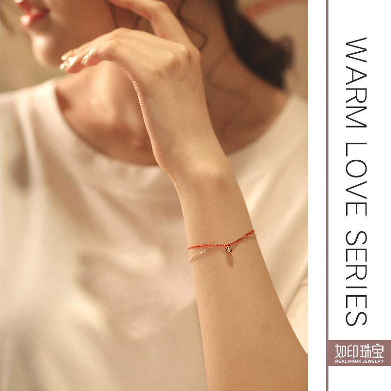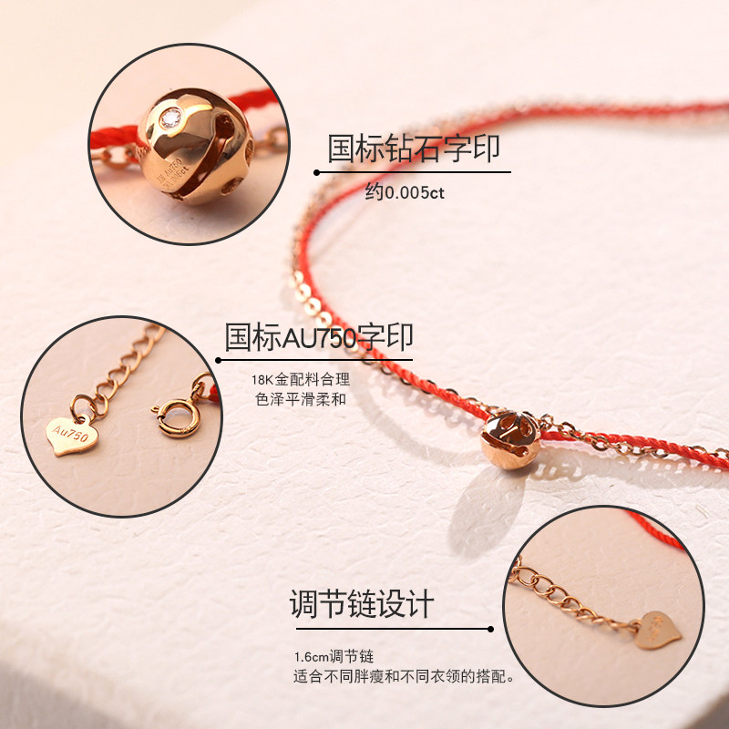 Diamond bell 18K gold Ben life red rope Handmade female colour gold rose gold Jane about red hands Rope Thin crowdsourced