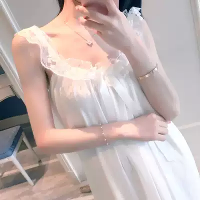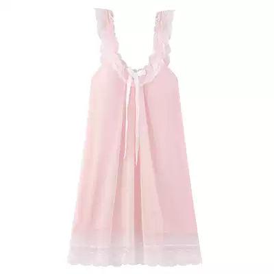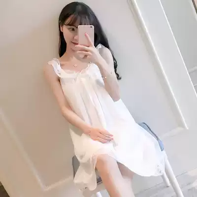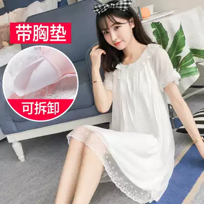 Pajamas with chest pad pajamas women Summer suspenders cotton lace mesh nightgown Women summer short sleeve Princess wind loose can be worn outside