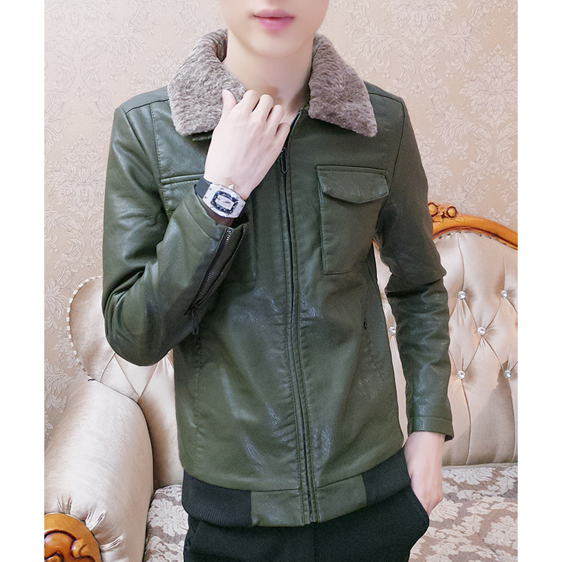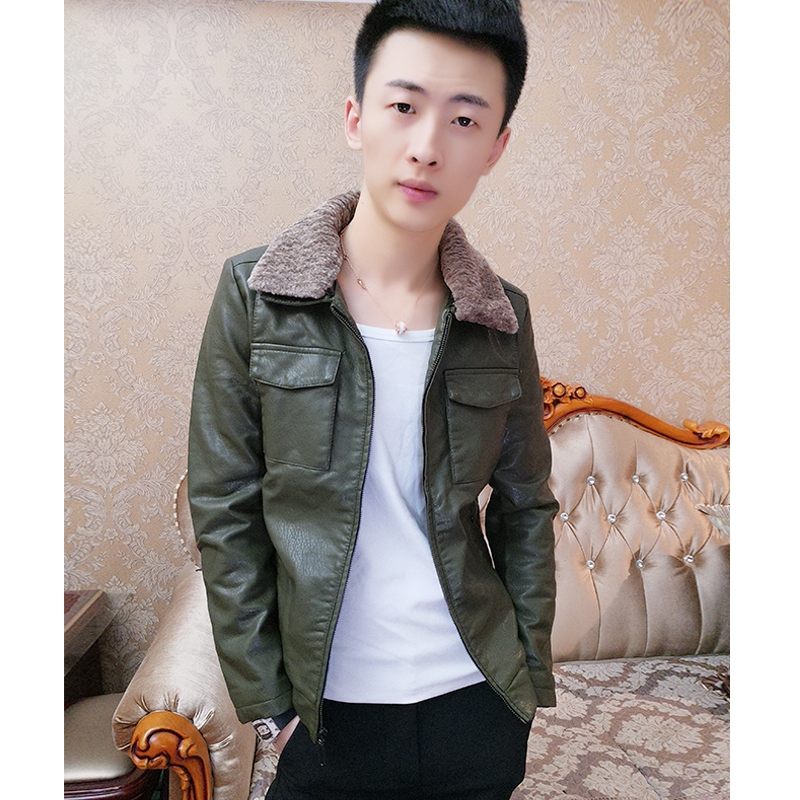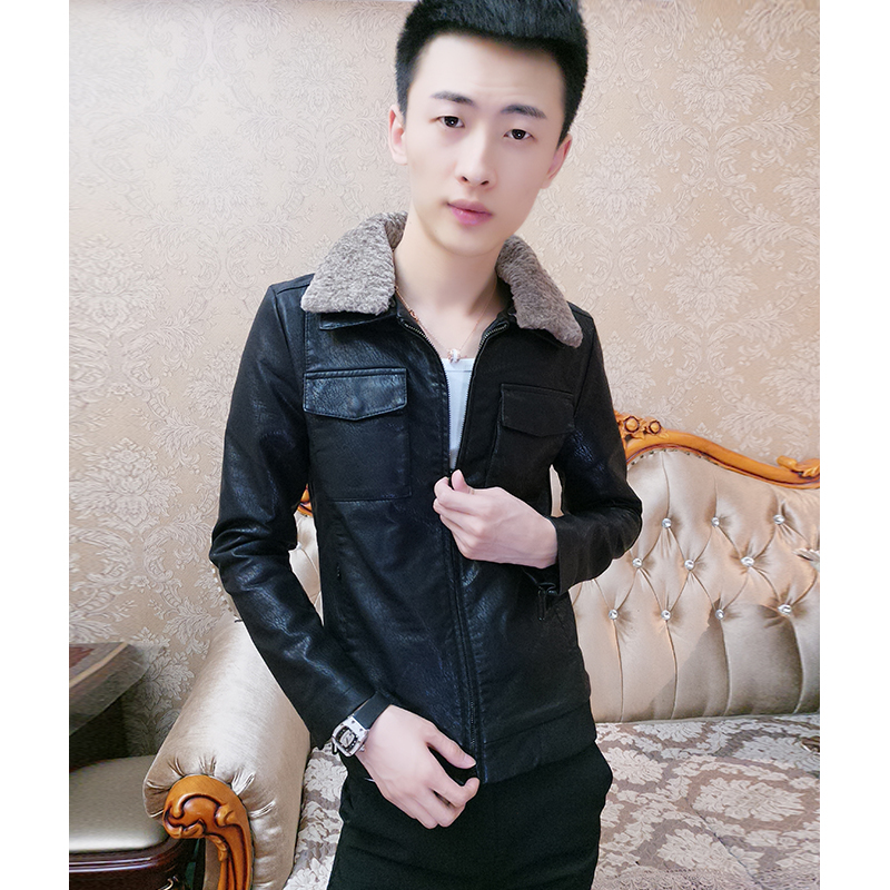 Tidal Male Thickened Fur Collar Leather Jacket Man Autumn Winter Workout Trend Locomotive Jacket Plus Suede Korean Version Handsome Fur Coat Blouse-Taobao
