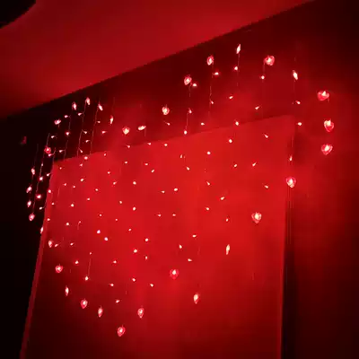 Small lantern flashing light string love curtain light net red light heart-shaped proposal decoration Romantic room home decoration light