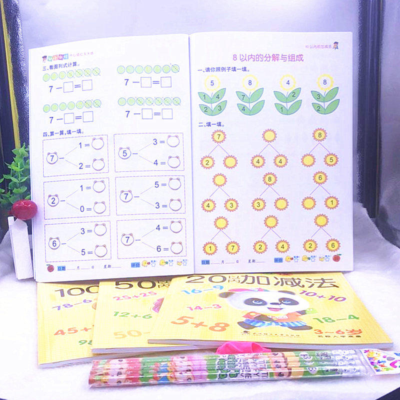 Addition and subtraction 4 books, 4 pencils, 1 pen holder
