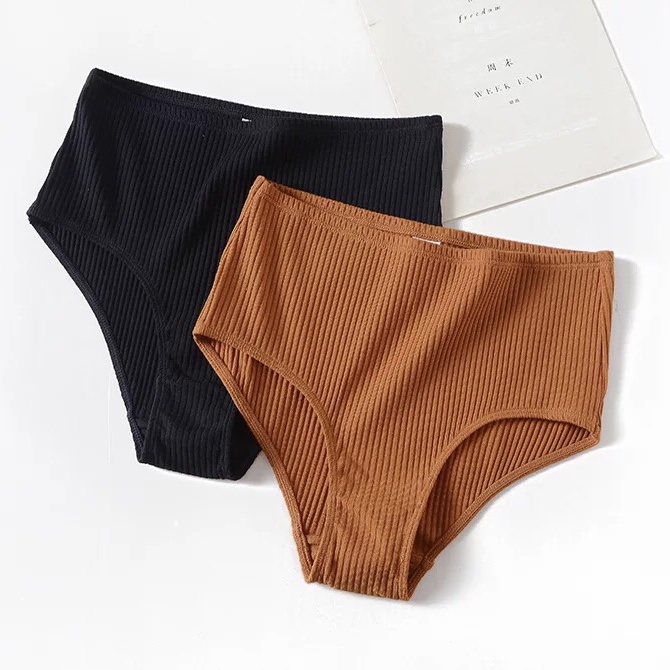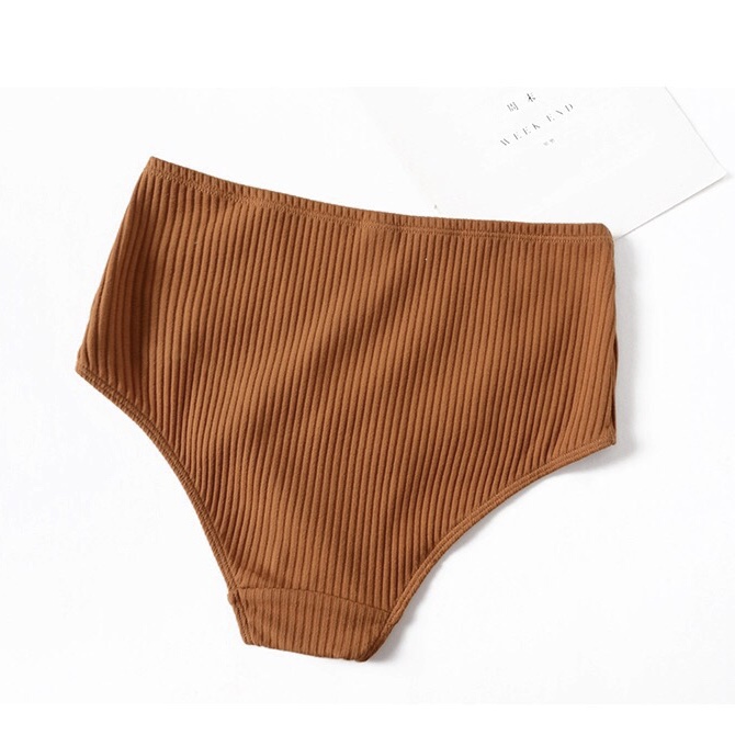Mierjia Simple Rib Breathable Cotton Comfortable High Waist Underpants Briefs Pumpkin Yellow Five Colors Into SML
