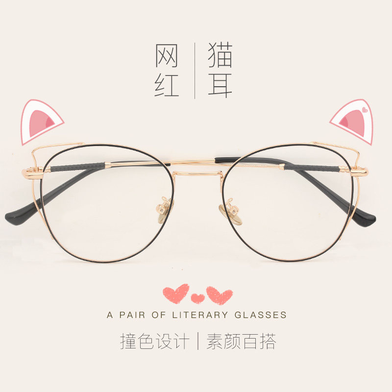 Net red glasses frame female makeup personality cat ears playful retro myopia glasses frame anti-blue light glasses tide wild