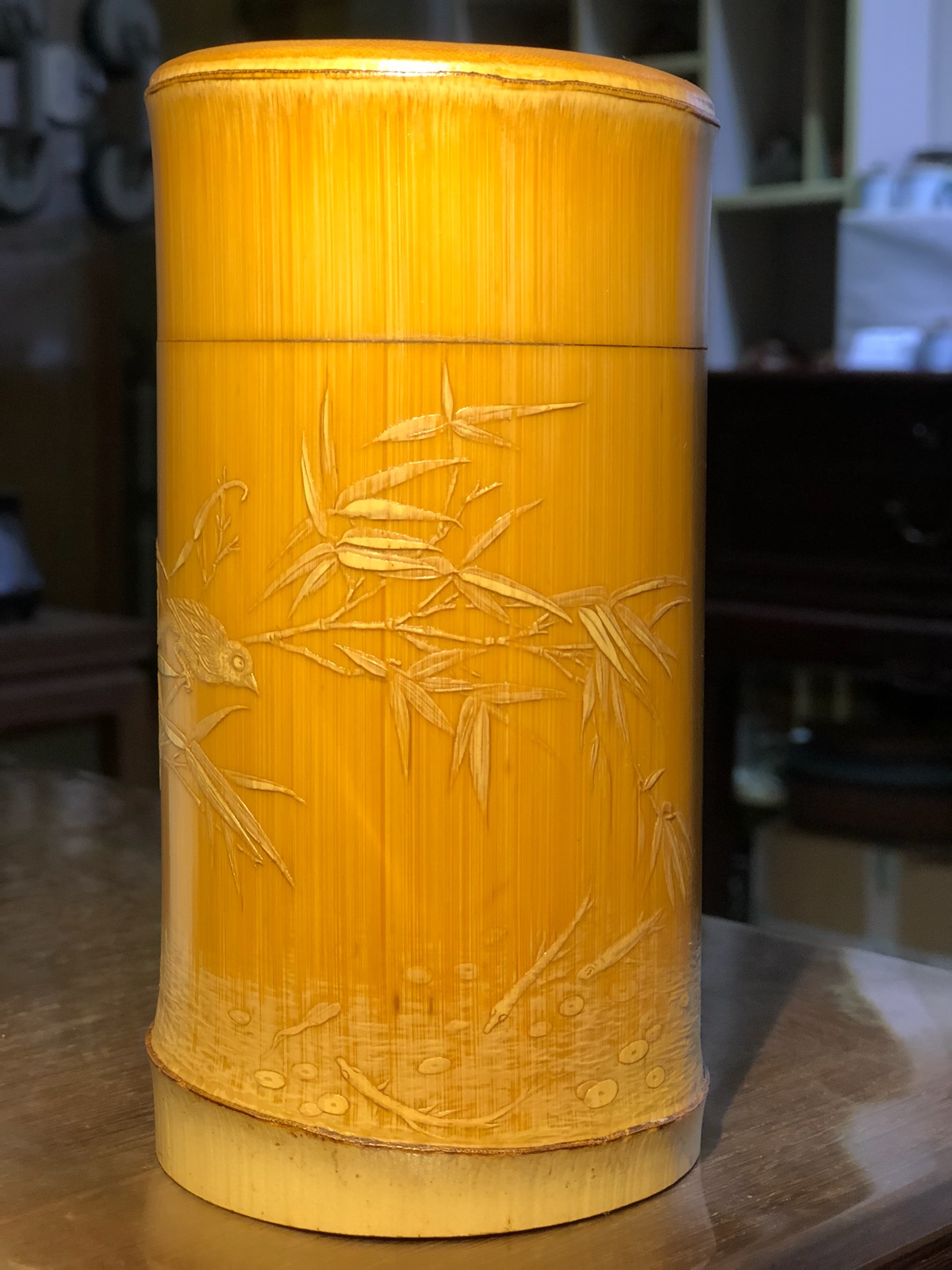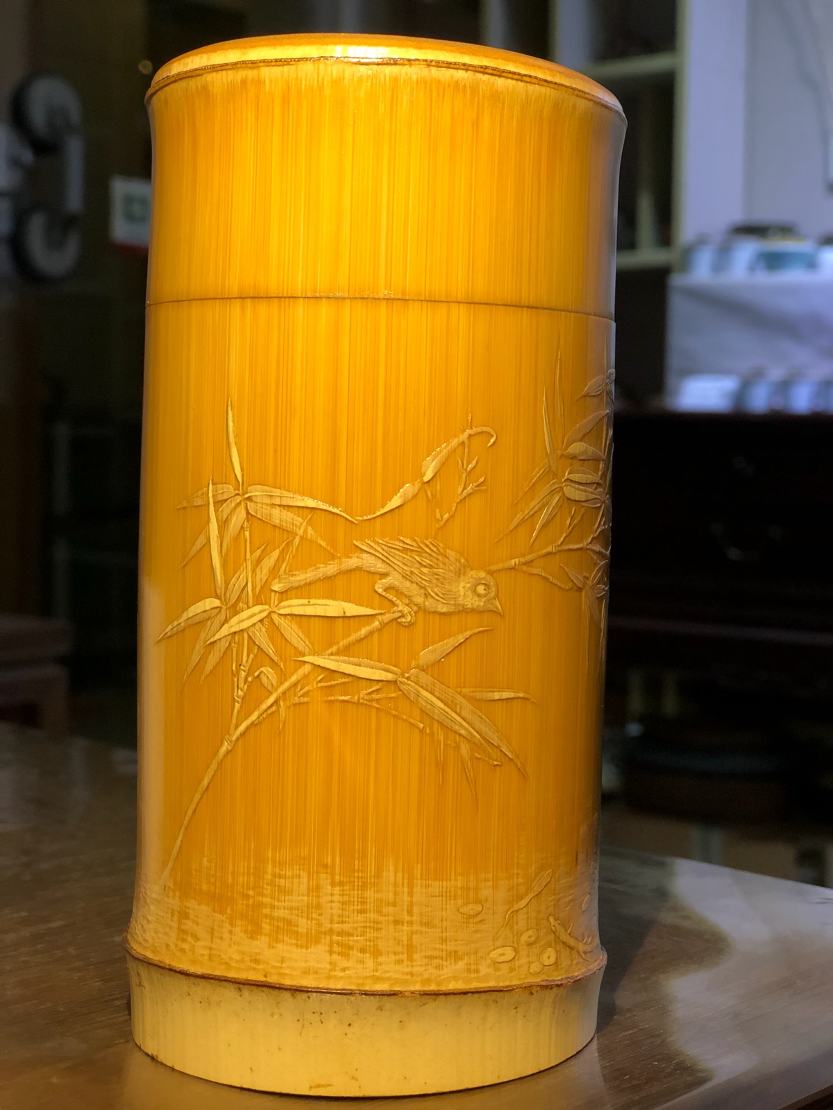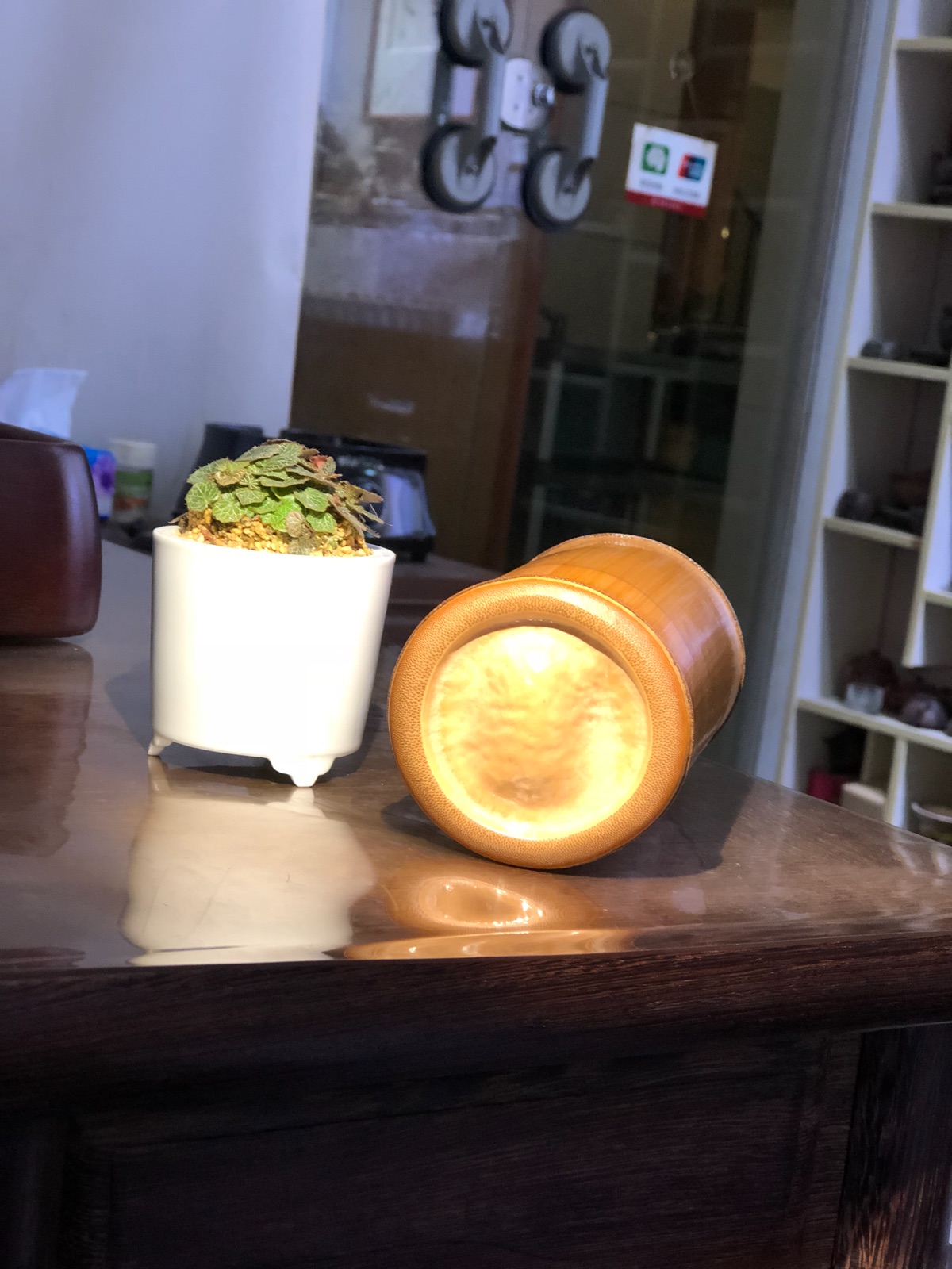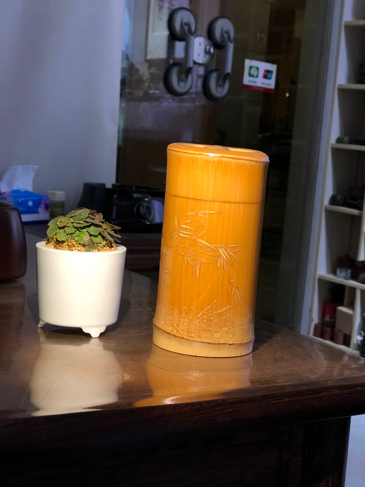 The tea pot of Yuzhu's green tea is 14 6 in height and 7 7 in diameter. It has been waxy yellow.